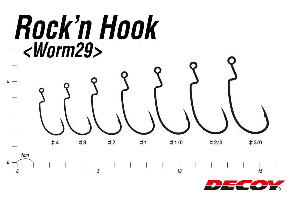 Die Marke Decoy ist im Angelsport ein Synonym für hervorragende Qualität und Innovation. Das Modell Worm 29 Rock'N gehört zur Kategorie der Spinn-Offset-Haken und ist ideal für das Wobbling, d.h. die schaukelnde Führung von Gummiködern und anderen Plastikködern, besonders in hängerträchtigem Gelände. Die Hakengröße 3/0 bietet ein perfektes Verhältnis für mittlere und größere Köder und optimiert das Eindringen und den Halt des Fisches.