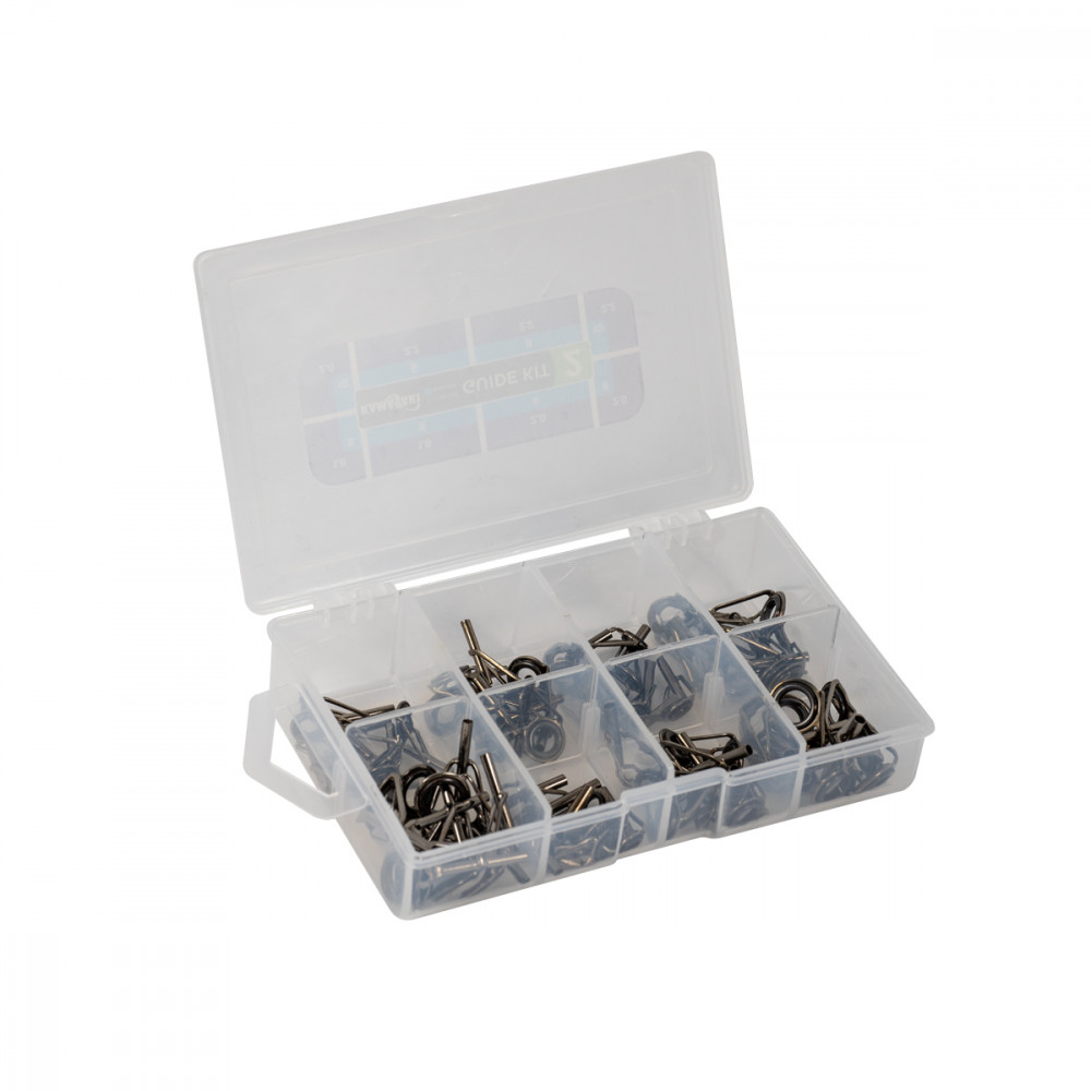 Kamasaki Basic Spitzenring + Guide Kit - Für alle Produkte der Marke Kamasaki gilt ein hervorragendes Preis-Leistungs-Verhältnis, was auch bei diesem ausreichend leichten Spitzenring mit Sic-Einlage zutrifft. Ein leichter, zuverlässiger Spitzenring aus einer hoch verschleißfesten Metalllegierung mit SIC (Siliciumoxid)-Einlage, dessen Größen-Sortiment jedem Angler die passenden Stücke bietet.