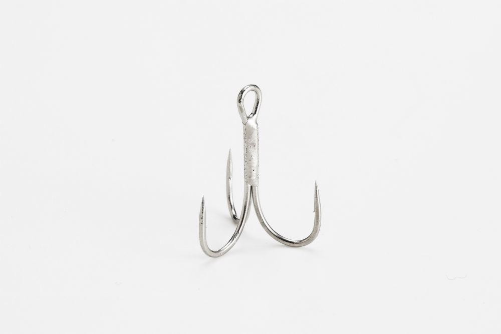 » Öhr-Widerhaken-Drillingshaken in Größe #4, perfekt für Raubfische.