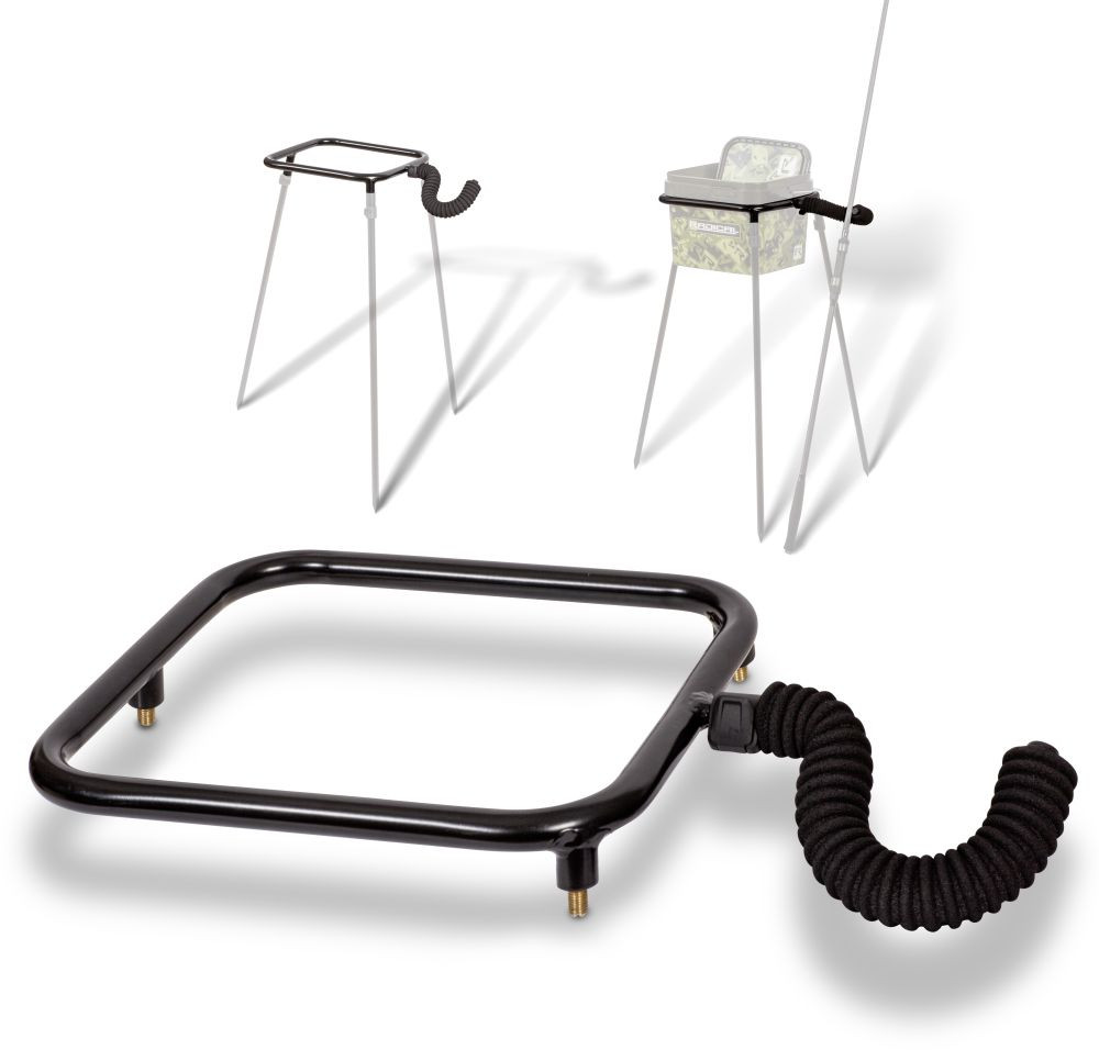 Unsere Radical Eimer passen hervorragend hinein, aber auch die meisten handelsüblichen Behälter. Die Rute kann an der Seite abgestützt werden, was dem Angler das ermüdende Bücken erspart.
