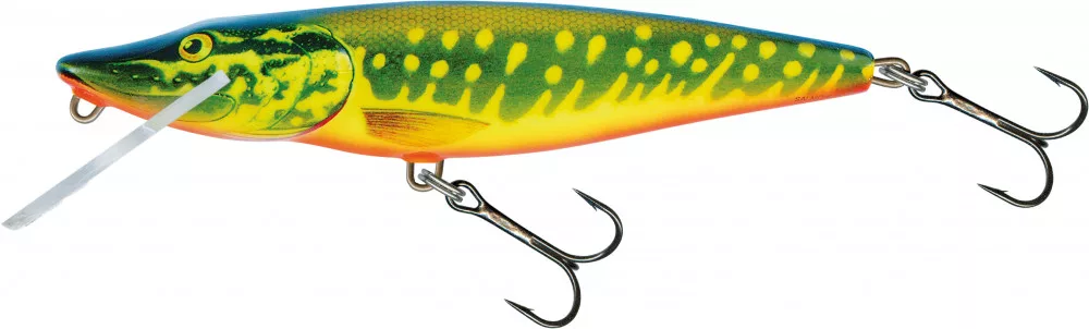 Experten wissen genau, dass der Hecht-Kannibalismus in jedem Gewässer typisch ist und rücksichtslos ausgenutzt wird. Egal wie viele ähnliche Wobbler es gibt, die Salmo Wobbler sind derzeit unschlagbar. Dutzende weltweit registrierte Rekord-Hechte fielen diesem Kunstköder zum Opfer. Die einhellige Meinung professioneller Angler ist, dass man beim Hechtangeln ein paar Pike Wobbler in der Tasche haben sollte! Fischarten: Hecht Spezielle Orte, Situationen: Hauptsächlich in Seen, ausdrücklich für Hecht empfohlen.