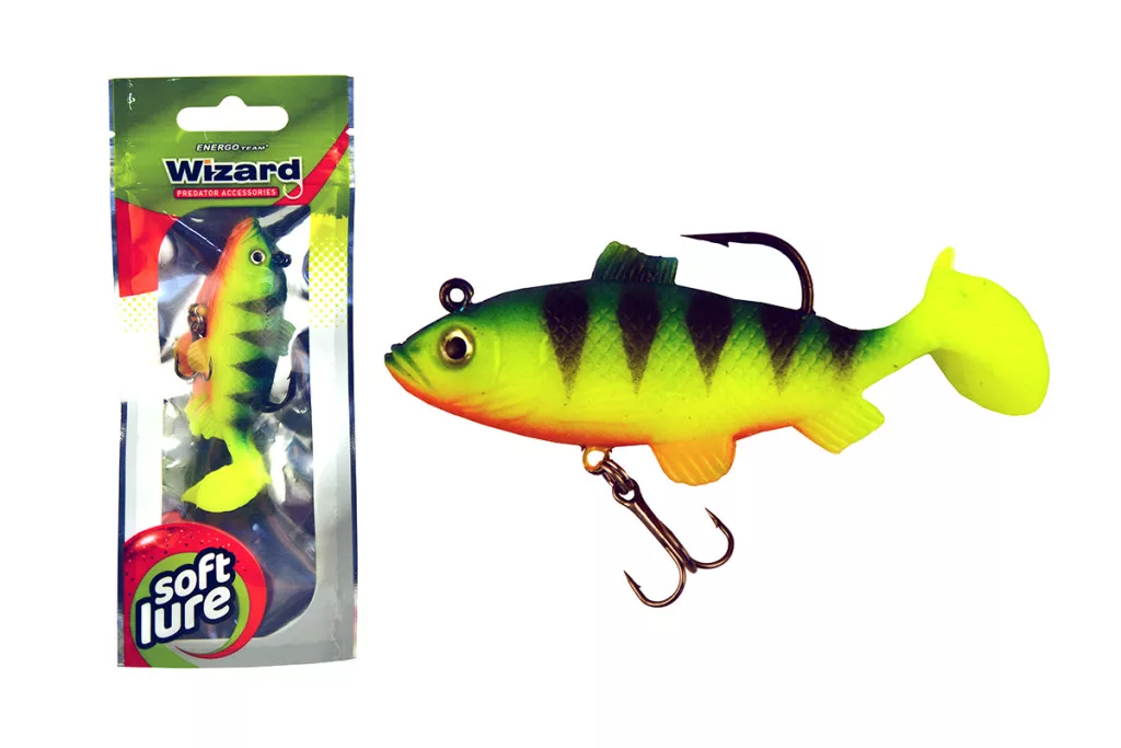 Der Packungsinhalt: 1 Stück Wizard Swimbait Perch 7,62cm Firetiger Gummifisch