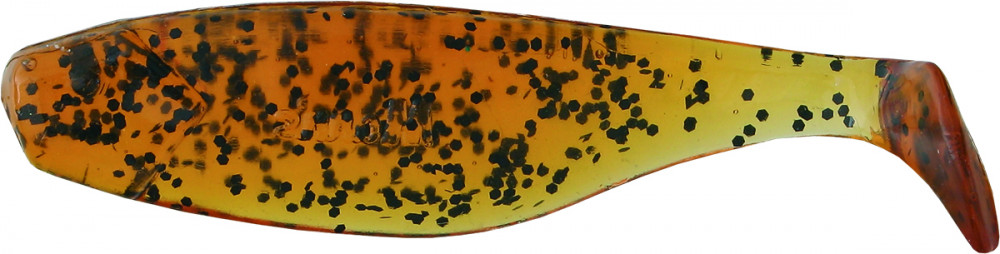 Ein Gummifisch in traditioneller Form, den der Hersteller mit einem überdurchschnittlich großen, scheibenförmigen Schwanz ausgestattet hat.