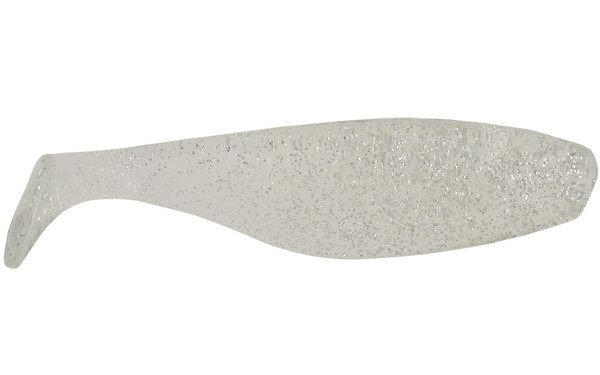 Ein Gummifisch in traditioneller Form, den der Hersteller mit einem überdurchschnittlich großen, scheibenförmigen Schwanz ausgestattet hat.