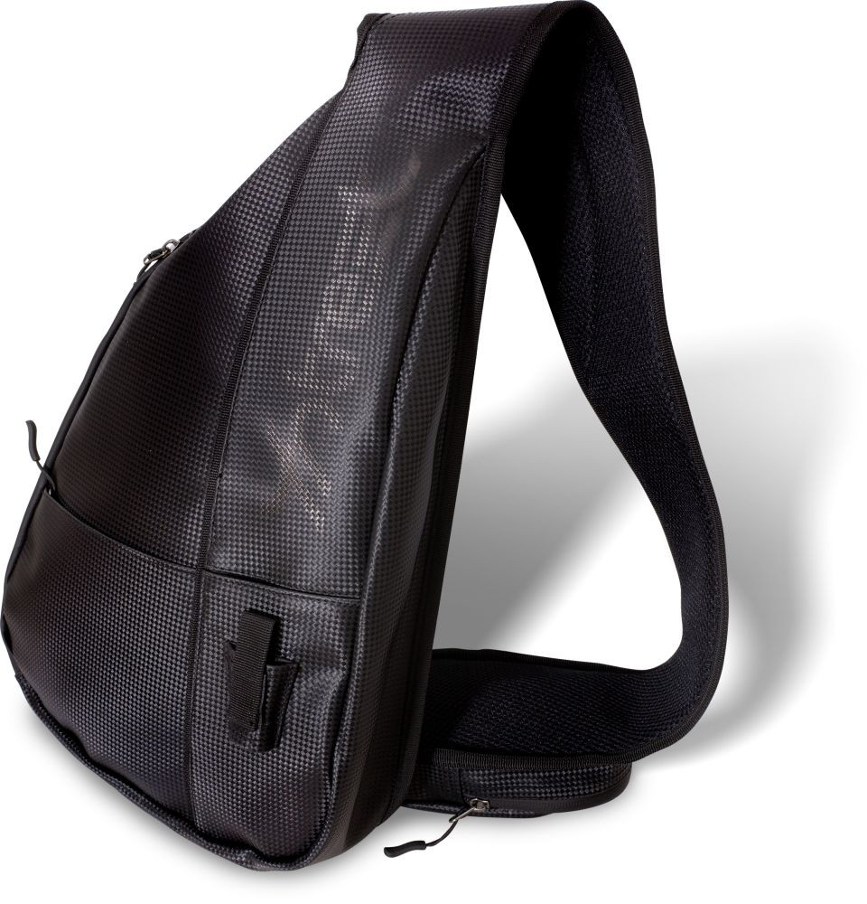 Praktische, moderne, tropfenförmige Sling-Umhängetasche für optimale Organisation, deren körpernahe Platzierung das Urban Fishing unterstützt.
