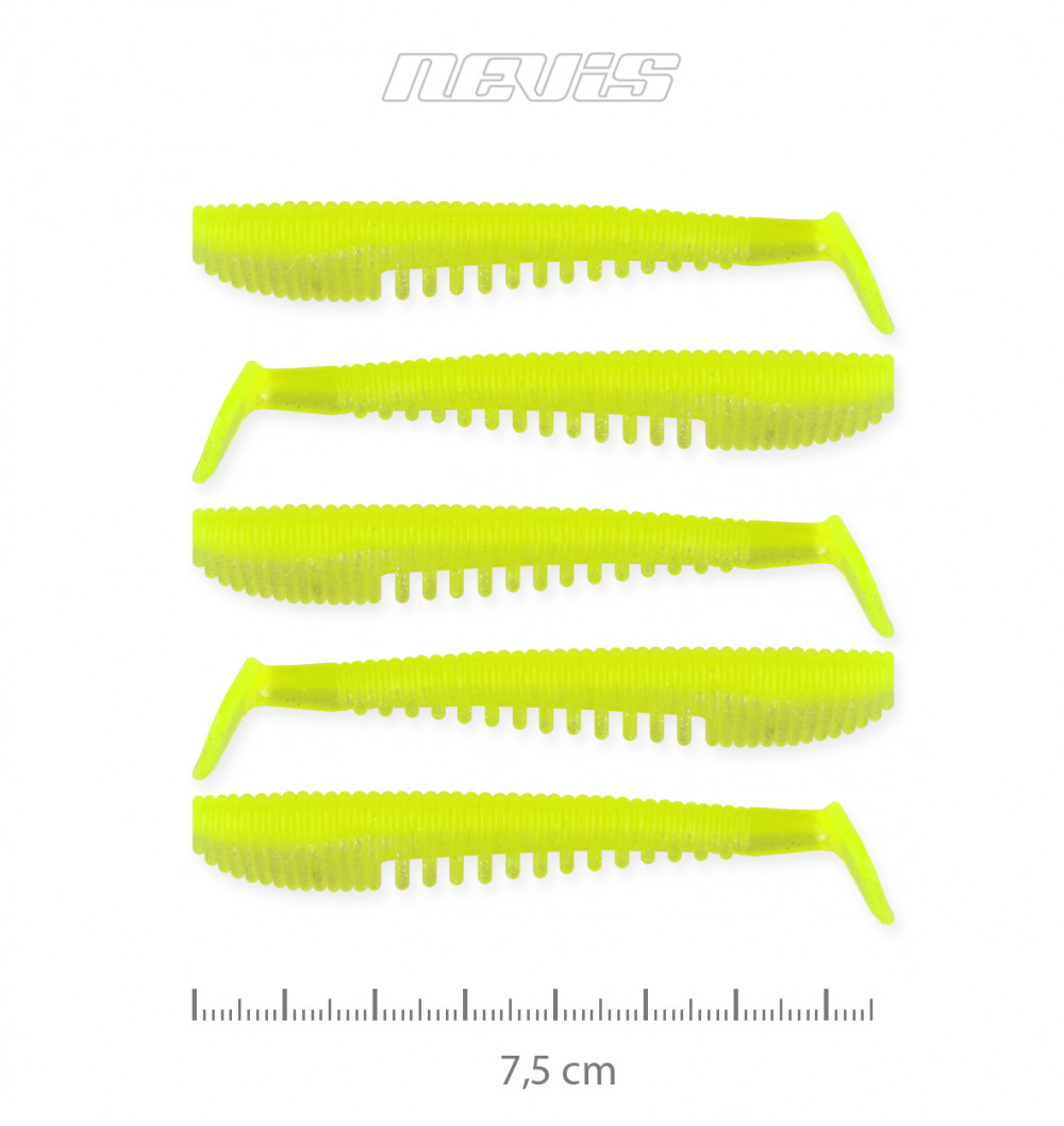 Nevis Impulse Shad 7,5cm 3,05gr 5Stk/Pckg Fluorgrün Plastikköder