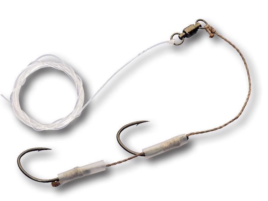 » Zwei extrem starke, scharfe Haken (7/0, 9/0) für sicheren Anhieb.