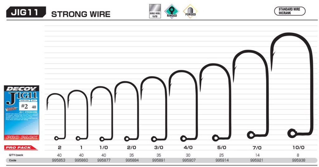 Decoy Pro Pack Jig11 Strong Wire #3/0 Öhr-Widerhaken-Einzel-Jig-Haken 35Stk detaillierte Beschreibung
