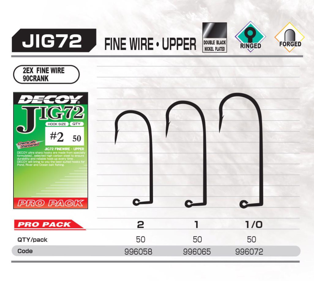 Decoy Pro Pack Jig72 Upper Fine Wire #1/0 Jig-Haken mit Öhr und Widerhaken, Einzelhaken 50 Stk.