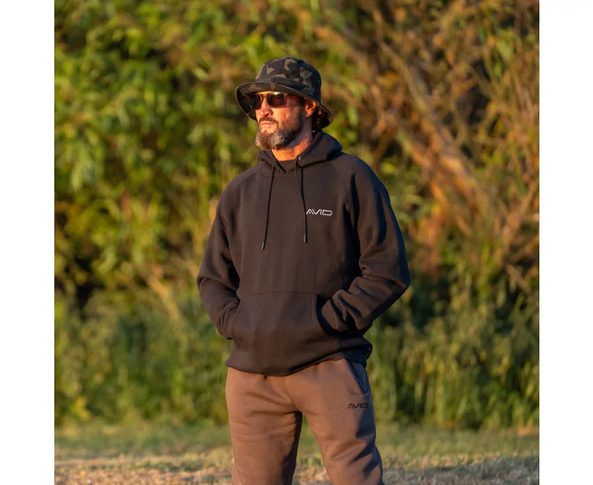 Der Avid Compound Hoodie ist ein stilvoller und funktionaler schwarzer Kapuzenpullover, der speziell für Outdoor-Aktivitäten, insbesondere zum Angeln, entwickelt wurde. Sein klares Design wird durch eine große 3D Avid Fischkopf-Grafik auf der Rückseite charakterisiert, die die Verbundenheit zur Marke sofort erkennbar macht.
