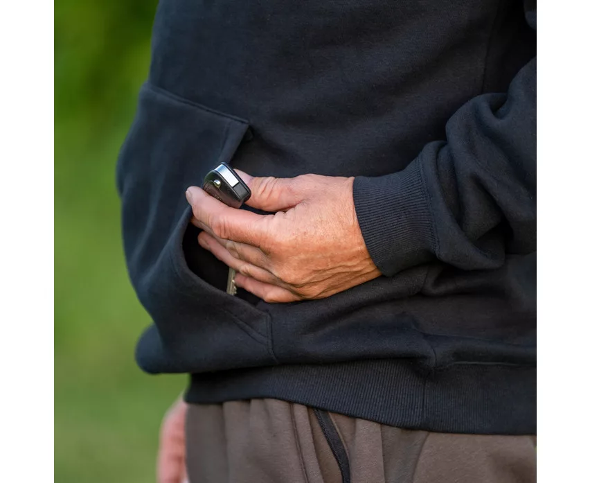Das Design des Pullovers wurde speziell für längere Aufenthalte im Freien optimiert. Das strapazierfähige und warme Material, der bequeme Schnitt und die schützende Kapuze sorgen dafür, dass der Angler sich voll und ganz auf das Wasser und die Bisse konzentrieren kann, ohne durch widrige Wetterbedingungen gestört zu werden. Die schwarze Farbe lenkt zudem keine Aufmerksamkeit auf sich und fügt sich somit besser in die natürliche Umgebung ein.
