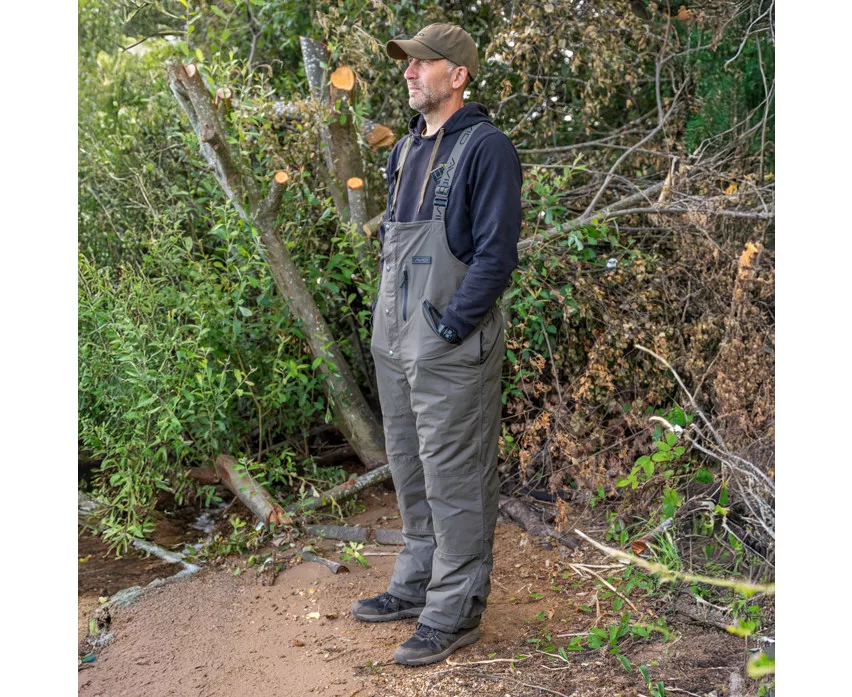 Die Trägerhose ist mit verstärkten Knie- und Gesäßbereichen ausgestattet, wodurch sie verschleißfest und widerstandsfähig gegen mechanische Beanspruchung ist, insbesondere im Sitzen oder Knien. Im Inneren der Jacke befinden sich durchgehende Reißverschlussstaschen, die sichere Aufbewahrungsmöglichkeiten für Wertsachen bieten. Die fleecegefütterten Handwärmertaschen sind besonders nützlich an frostigen Morgen, wenn Handschutz von größter Bedeutung ist.