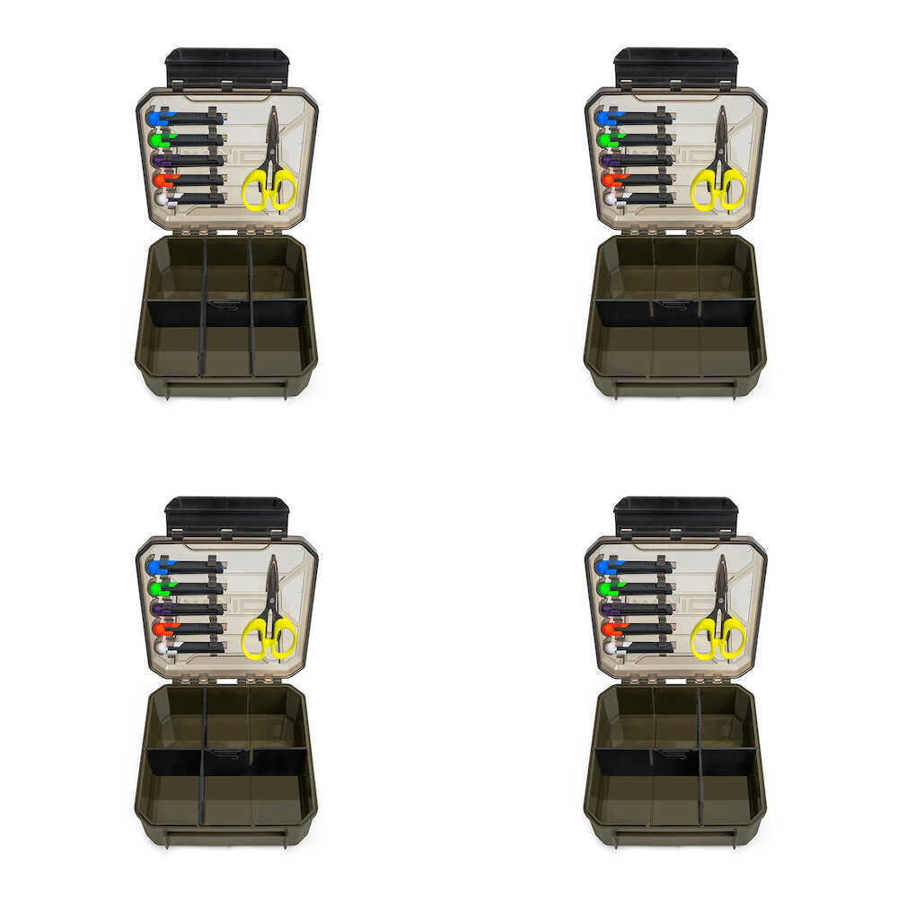 Die Abmessungen der Box betragen 18 x 18 x 8 cm, sodass sie problemlos in die meisten Angeltaschen, Boote oder sogar auf Angelstationen am Ufer passt. Trotz ihrer kompakten Größe bietet die Box ausreichend Platz für die benötigten Werkzeuge. Die Box verfügt über mehrere Trennwände, die eine präzise Konfiguration des Innenraums nach Ihren Bedürfnissen ermöglichen. So können Sie verschiedene Angelgeräte wie Ersatzschnüre, Vorfächer, PVA-Taschen und anderes wichtiges Zubehör einfach organisieren.