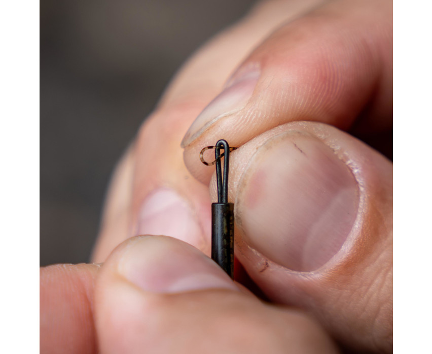 Die konische, schmale Schlaufe am oberen Teil des Schafts kann Hauptschnüre bis zu 0,50 mm Dicke aufnehmen. Die Hauptschnur kann direkt an der Schlaufe befestigt werden, oder für einen schnellen PVA-Beutelwechsel kann eine Schlaufen-in-Schlaufen-Verbindung verwendet werden. Diese Flexibilität ermöglicht es dem Angler, die Montage an seine eigene Technik und Situation anzupassen.