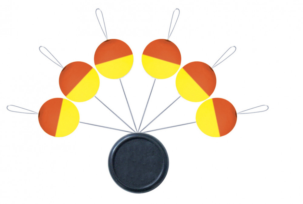 XT- BLISTER FLOAT ROUND N°2 (FLUO ORANGE/YEL.) - runder, zweifarbiger (gelb/orangefarbener) Stopper für bessere Sichtbarkeit. In verschiedenen Größen erhältlich. Verpackung 6 Stk. pro Packung.