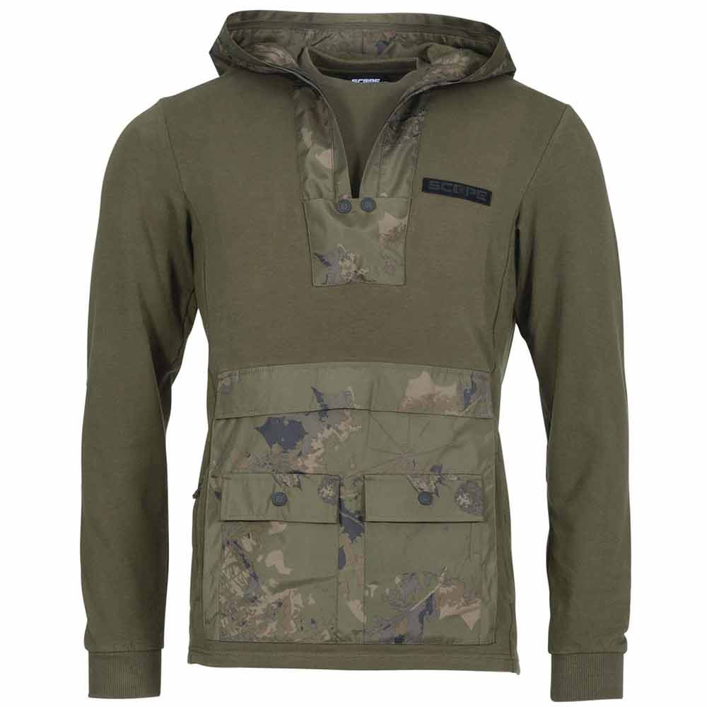 Der Nash Pullover ist ein ideales Kleidungsstück für sommerliche Angelausflüge, wenn die Morgen und Abende noch kühler sind. Hergestellt aus 96% Baumwolle, 4% Elasthan, einem bequemen und leichten Material. Verfügt über einen versteckten, hochzippbaren Moskitonetz-Gesichtsschutz, der nützlich ist, wenn Mücken oder Insekten angreifen. Die Kapuze ist ausreichend groß und schützt unseren Kopf vor plötzlichem Regen oder Wind. Vorne ist er mit praktischen Taschen und einer Kängurutasche mit Fleece-Handwärmern ausgestattet. Die Ellbogenbereiche sind mit wasserdichtem Material versehen.