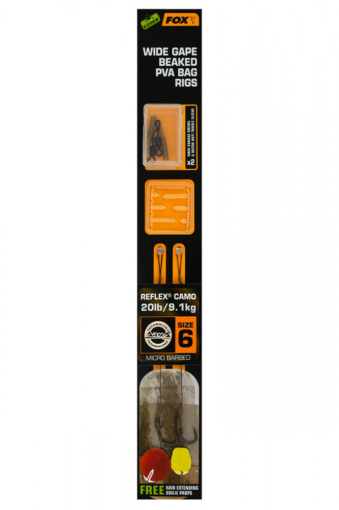 Fox EDGES™ Wide Gape Beaked PVA Bag Rigs 20lb Size 6 Brown & Green Vorgebundener Haken detaillierte Beschreibung