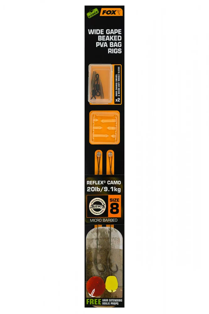 Fox EDGES™ Wide Gape Beaked PVA Bag Rigs 20lb Size 8 Brown & Green Vorgebundener Haken