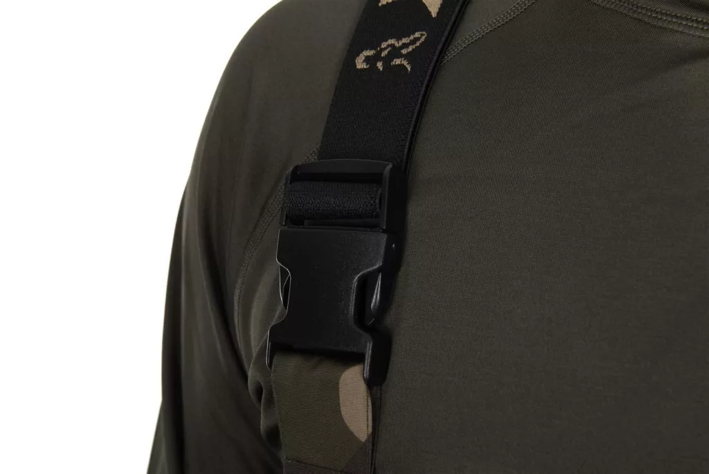 Die elastischen Schultergurte der Hose sind mit Schnellverschlüssen ausgestattet und somit einfach zu handhaben, während ein teilweise elastischer Bund eine bequeme Passform gewährleistet.