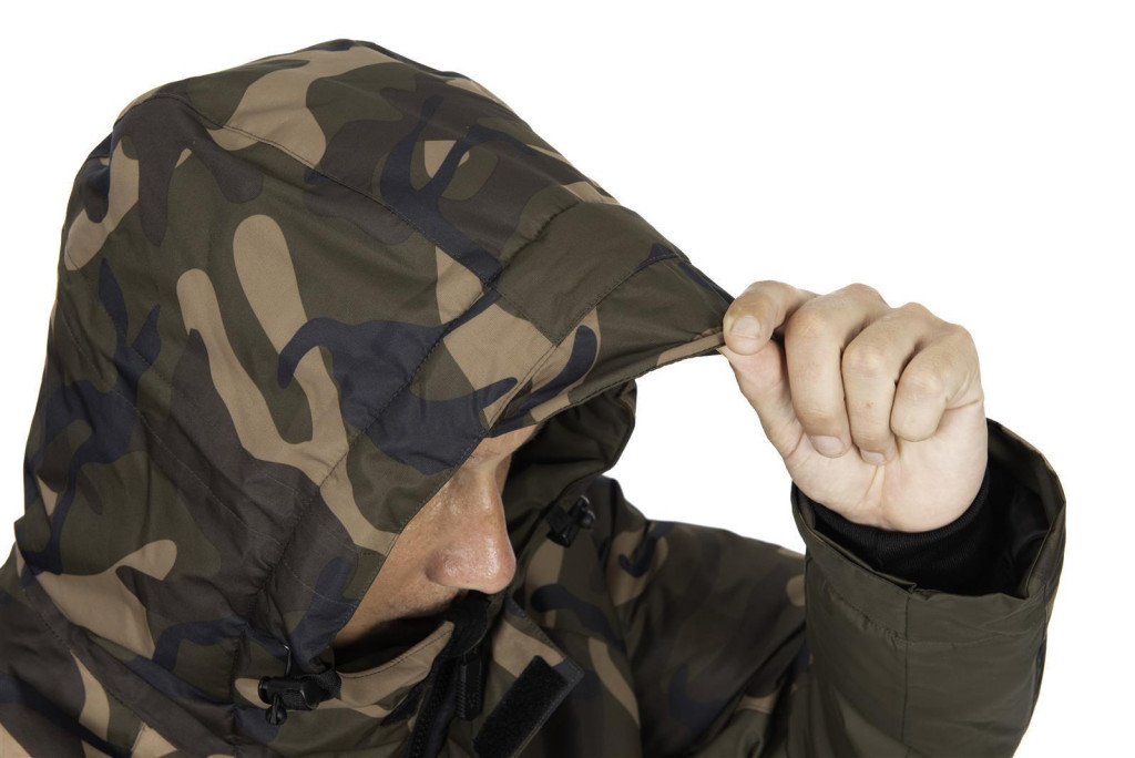 Das Khaki-Camo-Muster sorgt für ein stilvolles Erscheinungsbild, das perfekt in die natürliche Umgebung passt und somit ideal für das Gelände und am Wasser ist. Die verstellbare Kapuze mit Bungee-Kordelzug bietet zusätzlichen Schutz vor Regen, während die Zwei-Wege-Reißverschlüsse praktisch sind und ein schnelles An- und Ausziehen erleichtern.