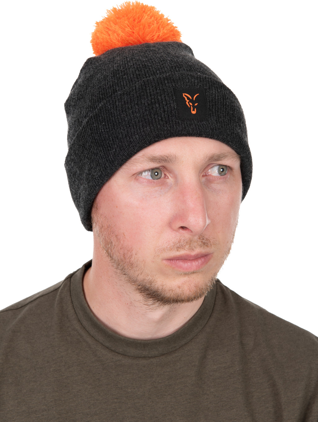 Fox Collection Bobble Hat Schwarz-Orange Bommelmütze