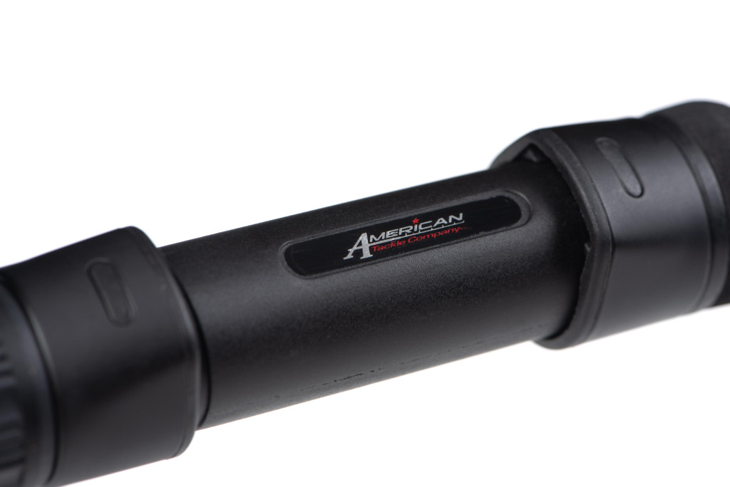 Zur Ausstattung der Rute gehört die 50 mm bis 16 mm American Tackle Delta-Lite Beringung in mattem Schwarz. Der 50 mm Leitring und der 30 mm zweite Ring sind doppelt gestützt, wodurch ein fester Halt und ein reibungsloser Schnurlauf garantiert sind. Der Rollenhalter ist ein 18 mm DPS American Tackle Modell, ebenfalls in mattem Schwarz, das die Rolle auch bei intensiver Nutzung stabil hält. Die schwarze Manschette und Endkappe verstärken zusätzlich das klare Erscheinungsbild.