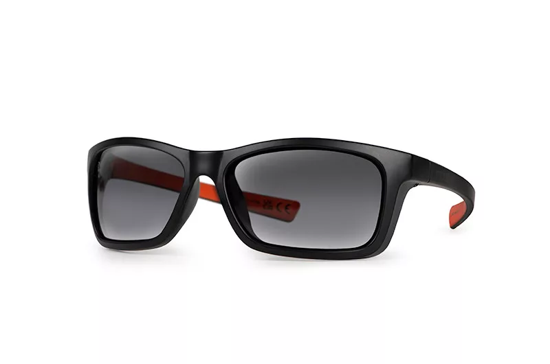 Fox Collection Wraps Schwarz-Orange Polarisierte Sonnenbrille mit grauen Gläsern
