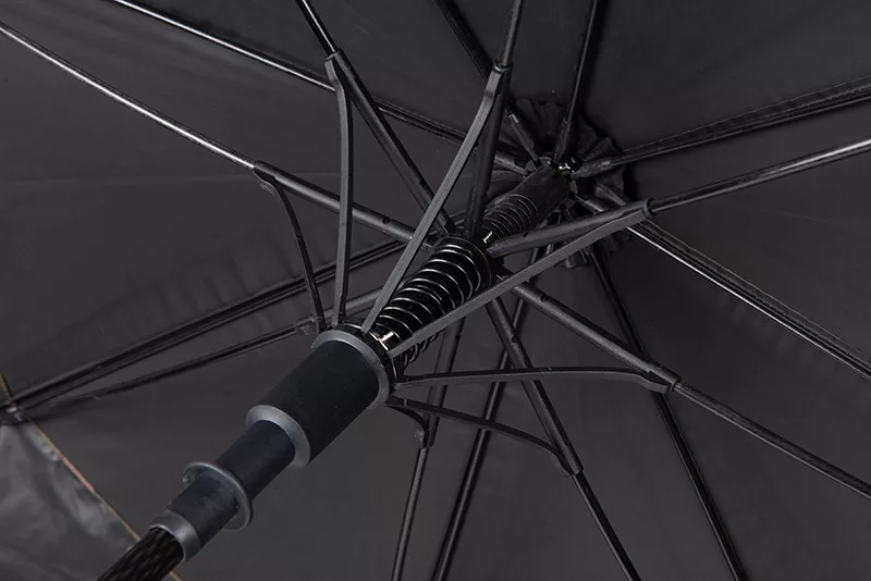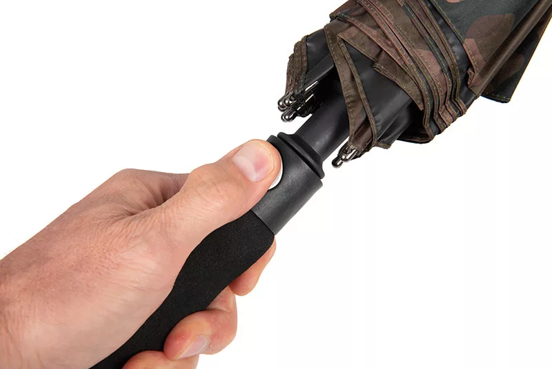 Der Rahmen besteht aus Glasfaser, die leicht und gleichzeitig extrem strapazierfähig ist. Der Ein-Tasten-Freigabemechanismus ermöglicht einen schnellen und einfachen Aufbau des Schirms, sodass der Angler in wenigen Augenblicken einen sicheren Unterschlupf errichten kann. Die doppelten Befestigungsgurte bieten zusätzliche Stabilität, während die mitgelieferte Tragetasche den Transport und die Lagerung des Schirms erleichtert.