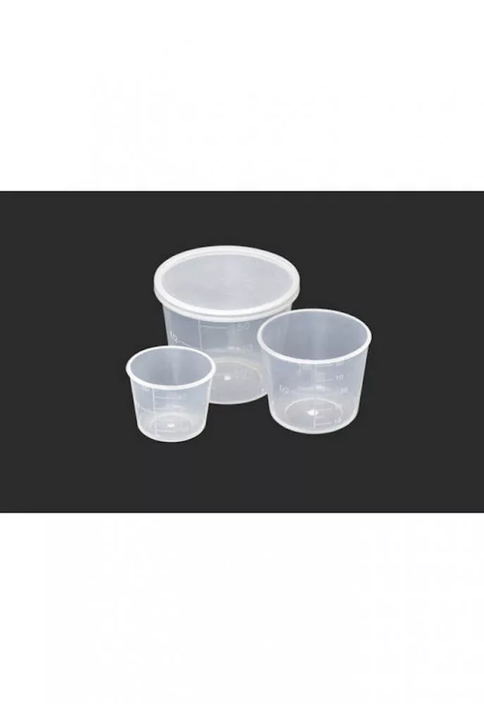 Messbecherset. Dreiteiliges Dipping-Becher-Set mit Deckeln und Skala, in dem die für den Haken bestimmten Köder aromatisiert werden können.