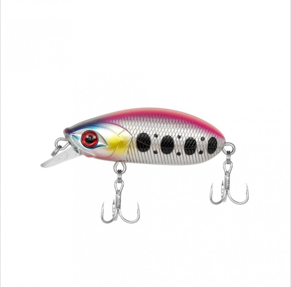 Schwimmender Crank-Wobbler. Obwohl er nur 5 cm lang ist, kann er dank seines dicken Körpers auch gegen größere Raubfische erfolgreich eingesetzt werden. Wir verwenden ihn hauptsächlich beim Spinnfischen auf Hecht und Rapfen, wobei er bei Hecht langsamer geführt wird, während er bei Rapfen mit mittlerer Geschwindigkeit geführt wird. Wenn wir in Gewässern mit großen Döbeln spinnfischen, sollten wir ihn unbedingt verwenden, denn mit seiner außergewöhnlichen Käferform kann er selbst erfahrene Döbel täuschen.