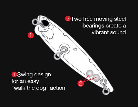 Er wurde um eine engere „Dog-Walking“-Bewegung erweitert, die sich nicht nur zum Absuchen großer Flächen eignet, sondern auch in Gewässern unter Druck effektiv ist. Der Pencil 85 erbt die seitliche Bewegung des 110er Modells und unterstützt den erfolgreichen Fang mit einer strafferen Aktion.