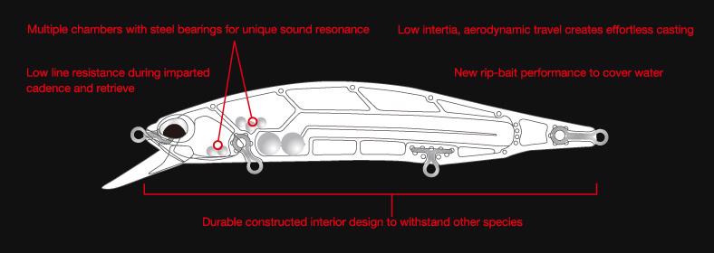 DUO ist stolz darauf, einzigartige Klangfrequenzen zu erzeugen, die sich von denen anderer Hersteller unterscheiden. Den einzigartigen Klang des Realis Jerkbait 110SP gewährleistet der Mehrkammerkörper. Seine doppelte Tonhöhe stellt eine erfrischende Abweichung von den traditionellen Jerkbait-Klängen dar.