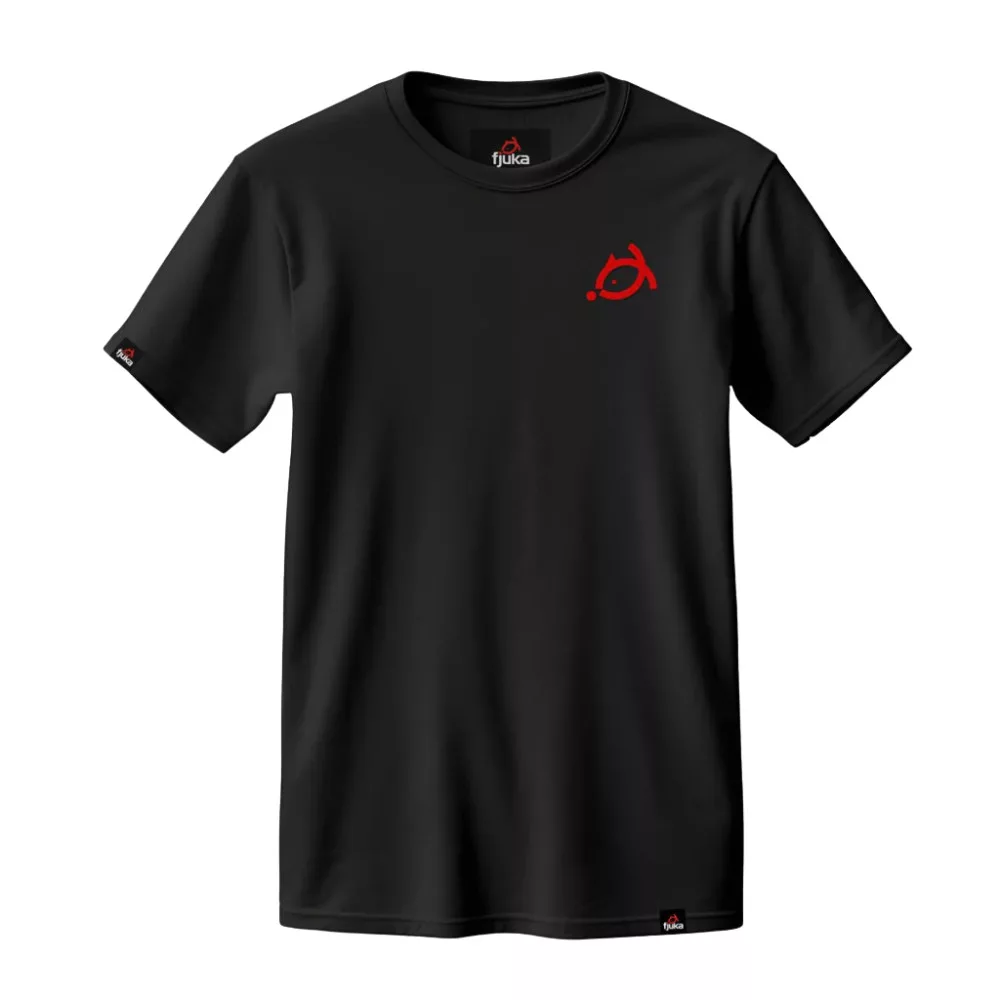Das T-Shirt ist in Schwarz und Rot erhältlich, verziert mit dem bekannten Fjuka Icon Logo. Die lockere Passform sorgt für Bewegungsfreiheit, sodass es auch bei längeren Angeltouren bequem zu tragen ist. Der flexible Rundhalsausschnitt und das Kurzarmdesign sind praktisch, während der doppelt genähte Halsausschnitt, die Ärmel und der Saum zusätzliche Haltbarkeit gewährleisten. Das Besondere am T-Shirt ist, dass es die Sichtbarkeit von Schweißflecken deutlich reduziert und so immer ein selbstbewusstes Erscheinungsbild bietet.