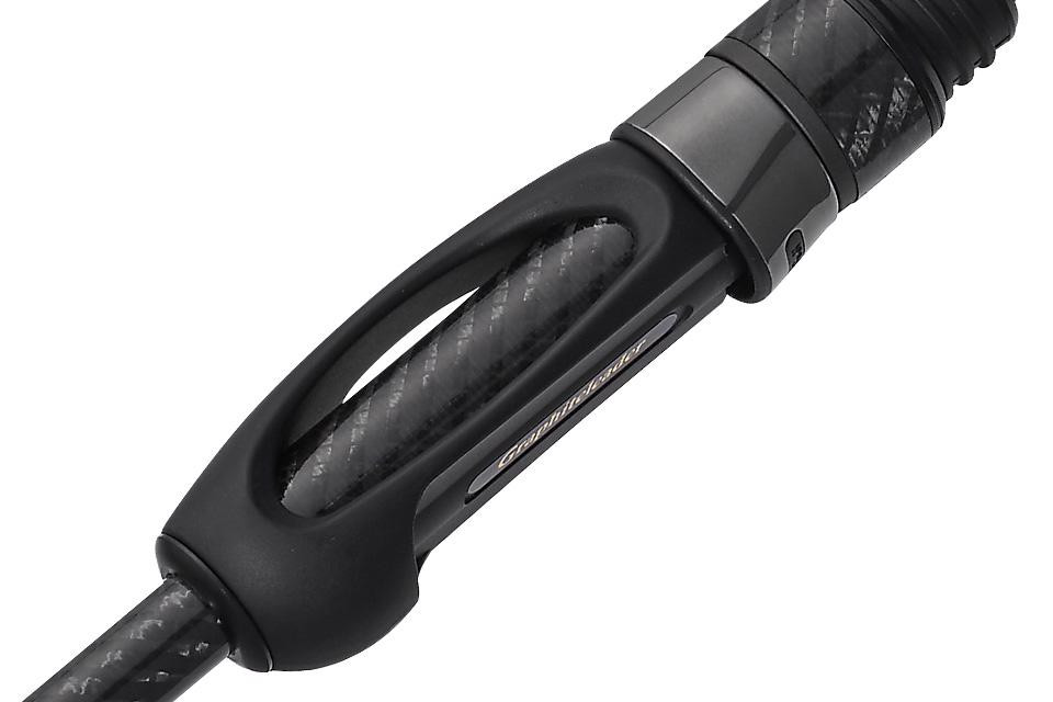 Das hochmodulige Carbon erzeugt einen schlanken, leichten und dennoch straffen Blank. Der Griffbereich ist mit schräg geschnittenem, leichtem Graphitgewebe überzogen, was die Torsionssteifigkeit erheblich erhöht.