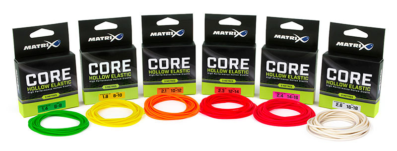Matrix Core Hollow Elastic 3M massives Gummi mit gelbem Innenrohr (Kern). Erhältlich in 6 Größen, die alle Methoden des Kopfrutenangelns abdecken.