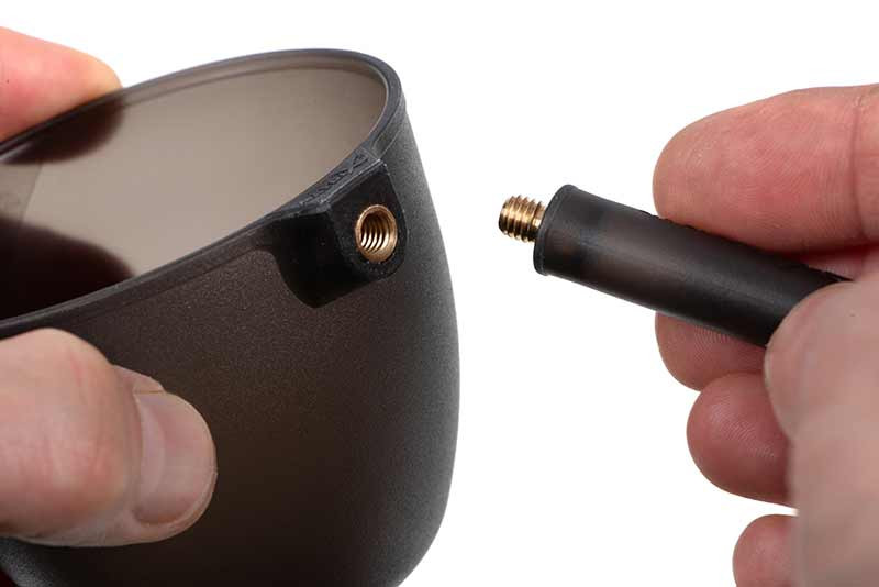 Entwickelt für das Füttern großer Mengen Köder. Zwei Größen, 150 ml und 250 ml Becher. Leicht, aus strapazierfähigem Kunststoff gegossen. Verstärktes Messinggewinde. Der Gewindeeinsatz kann innen (7 mm) oder außen (5 mm) montiert werden.