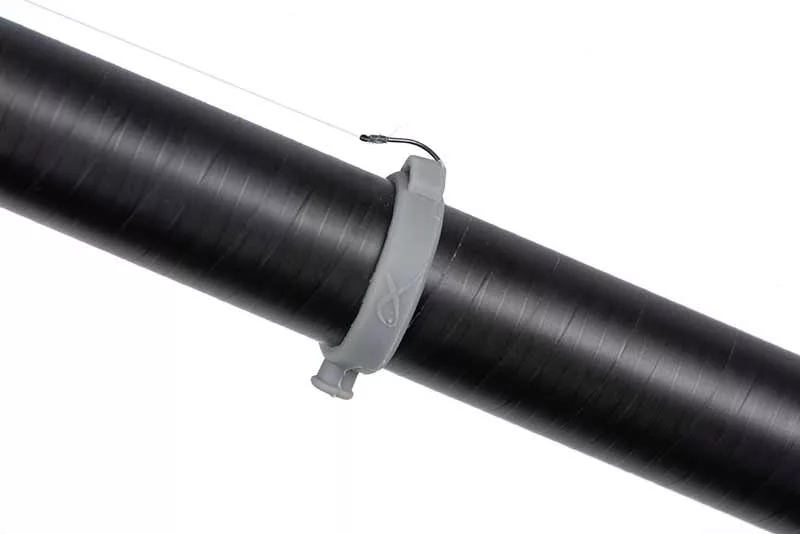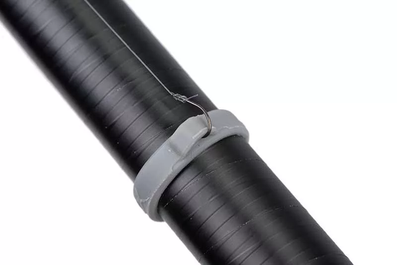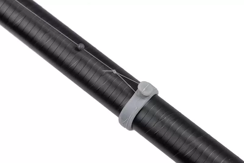 Das clevere Schlaufen-Design ermöglicht eine einfache und stabile Befestigung des Rigs an Angelruten und Top-Sets, sowohl während des Wartens auf dem Ständer als auch beim Transport am Ufer. Diese Funktion ist eine große Hilfe, wenn Sie mit mehreren Rigs arbeiten und diese schnell handhaben möchten, ohne dass sie sich verheddern oder beschädigt werden. Die dezente graue Farbe und das strapazierfähige Gummimaterial sorgen für ein unauffälliges, aber robustes Erscheinungsbild.