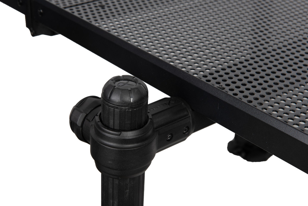 Der Adapter wurde so konzipiert, dass er am extra starken Außenrand der Matrix Seitenablagen befestigt werden kann. Die Befestigung kann in jeder Position um den Rand herum erfolgen, sodass der Angler die Platzierung seinen eigenen Bedürfnissen anpassen kann. Dies ist besonders nützlich, wenn ein Stützbein an der Ablage angebracht werden soll, da der Adapter perfekt für dessen stabile Befestigung geeignet ist.