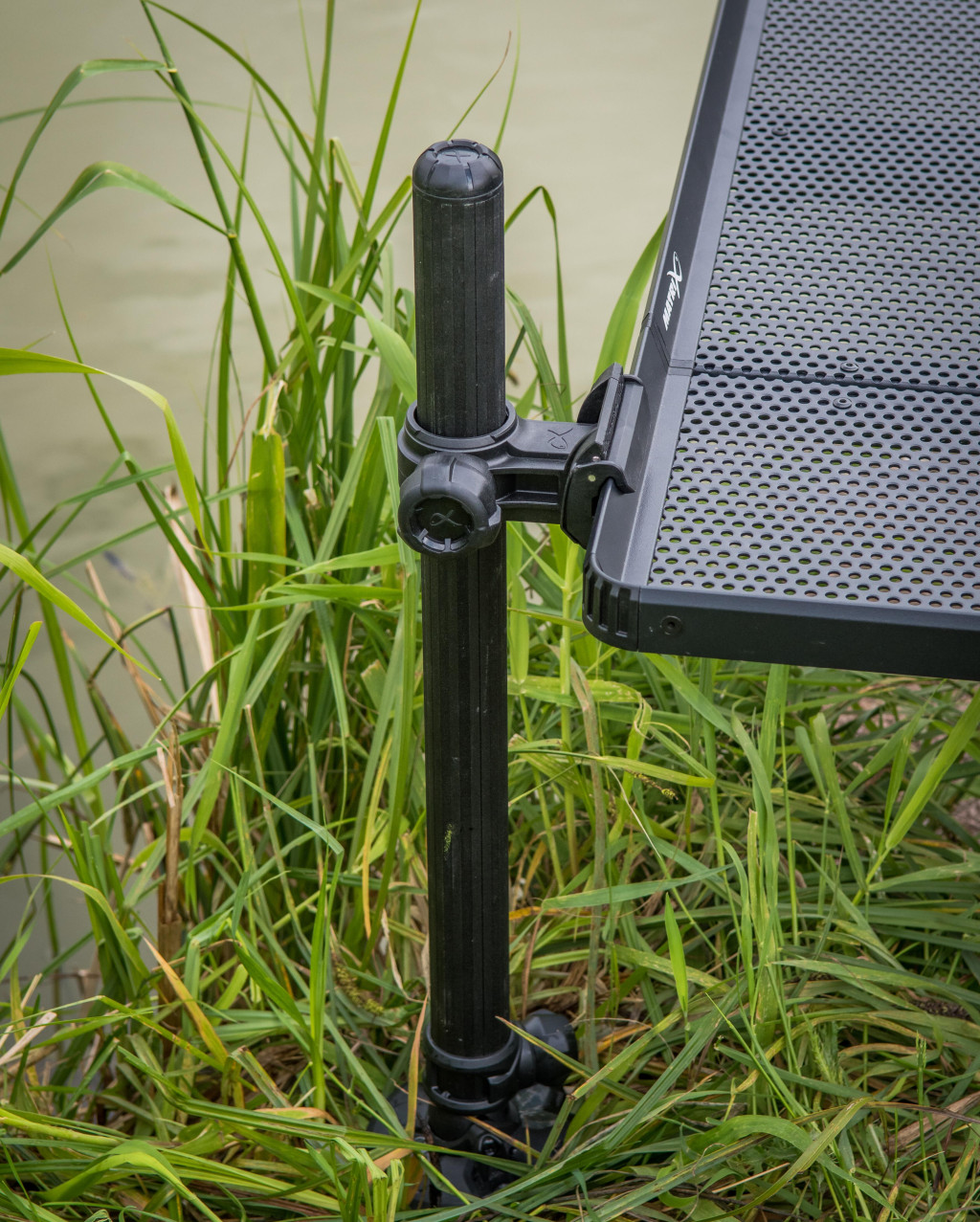 Der Matrix Folding Side Tray Clamp kann auch zur Befestigung eines Rutenhalters oder Köderschirms verwendet werden, sodass alle wichtigen Geräte während des Angelns griffbereit und sicher platziert werden können. Das Produkt wird mit 25 mm und 30 mm Einsätzen geliefert, sodass es leicht an Beine unterschiedlicher Durchmesser angepasst werden kann. Darüber hinaus ist es kompatibel mit 25 mm, 30 mm und 36 mm runden Beinen und somit vielseitig im Matrix System und mit Sitzkiepen anderer Hersteller einsetzbar.