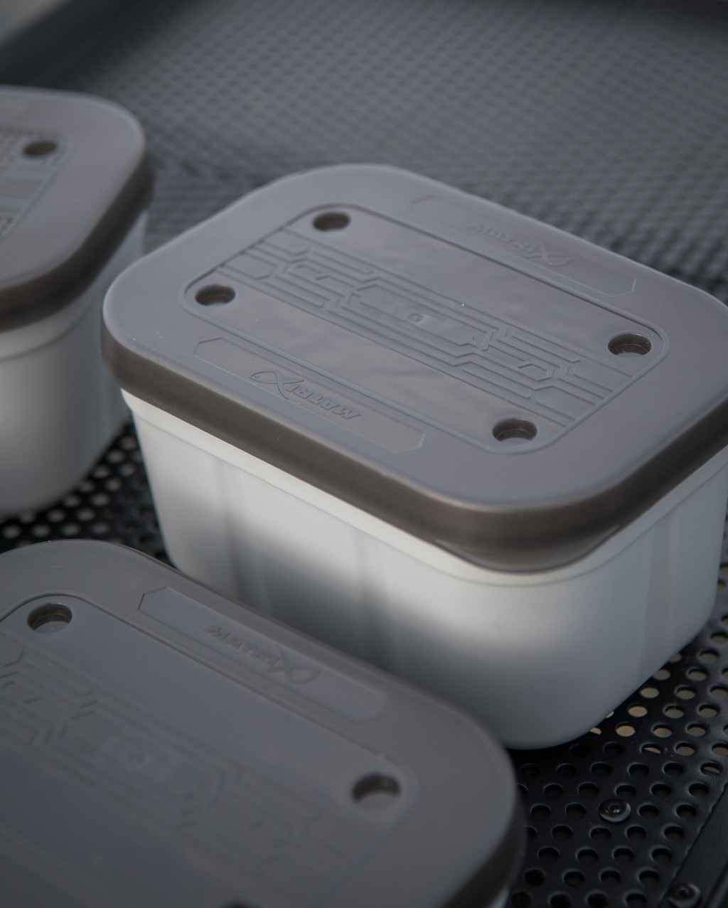 Die Matrix Air Lock Bait Tube ist in zwei Größen erhältlich: 1.25pts (0,71 Liter) und 2.0pts (1,13 Liter), sodass der Angler die Wahl an die Ködermenge anpassen kann. Das Material der Box ist strapazierfähiger Kunststoff, der Feuchtigkeit, UV-Strahlung und mechanischen Einflüssen standhält. Der abschließbare Deckel sorgt dafür, dass der Köder während des Transports nicht herausfällt und schützt den Inhalt vor äußeren Verunreinigungen.