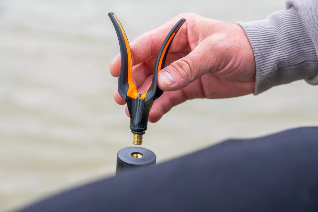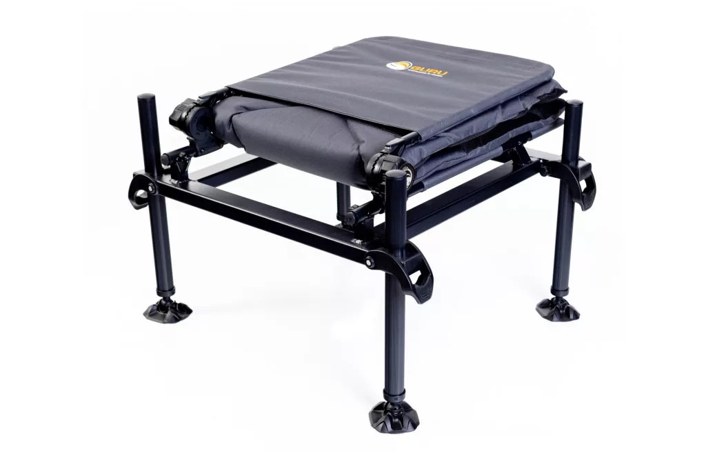 Die Stabilität der Beine mit 36 mm Durchmesser ist vergleichbar mit der von Wettbewerbsboxen. Dieser Standard ermöglicht es, alle modernen Zubehörteile – Seitentabletts, Feederarme, Fischhalteradapter – direkt am Stuhl zu befestigen. Unter den Gewindebefestigungspunkten (unter der Verschlusskappe) oben an den Beinen können weitere Zubehörteile, wie z.B. eine hintere Rutenauflage oder Pole Sock, angeschraubt werden.