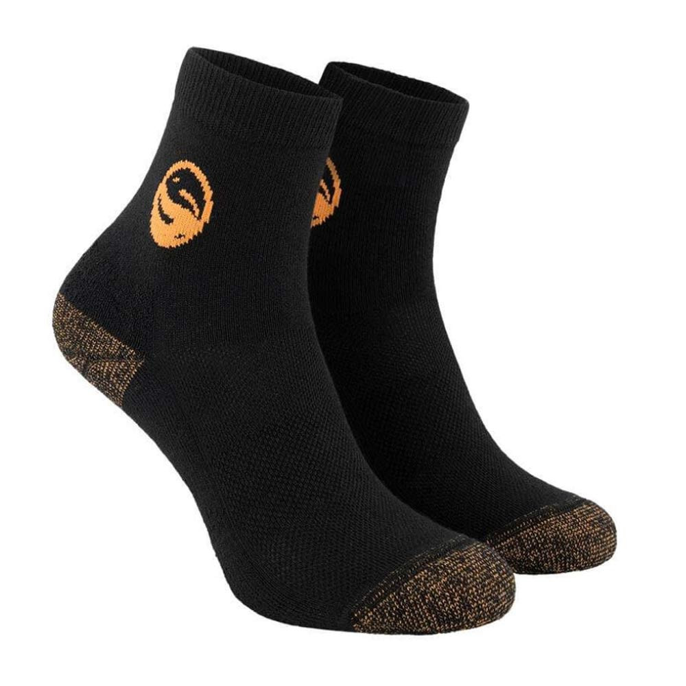 Die Guru Thermo-Socken sind ideal zum Angeln, Wandern und für den Aufenthalt im Freien in der Herbst- und Winterzeit. Sie bestehen zu 100% aus Merinowolle und wurden speziell für kalte Perioden entwickelt. Das hochwertige Material hilft, die optimale Fußtemperatur aufrechtzuerhalten. Die natürliche hydrophile Faser der Merinowolle leitet Feuchtigkeit von der Haut ab und hält die Füße auch in feuchter Umgebung trocken. Merinowolle ist auch für ihre antibakteriellen Eigenschaften bekannt, daher halten diese Socken die Füße den ganzen Tag frisch und lindern unerwünschte Gerüche. Einfach anzuziehen, elastisch und den ganzen Tag angenehm zu tragen. Mit verstärkter Ferse und Zehenbereich. Hervorragend isolierend, hält die Füße warm.