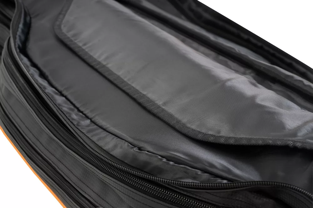 Der Rutenhalter wurde für den dauerhaften Einsatz konzipiert und verfügt über einzigartige schwarze und orangefarbene Guru Reißverschluss-Zipper und einen hochleistungsfähigen Reißverschluss für längere Lebensdauer und Leistung.