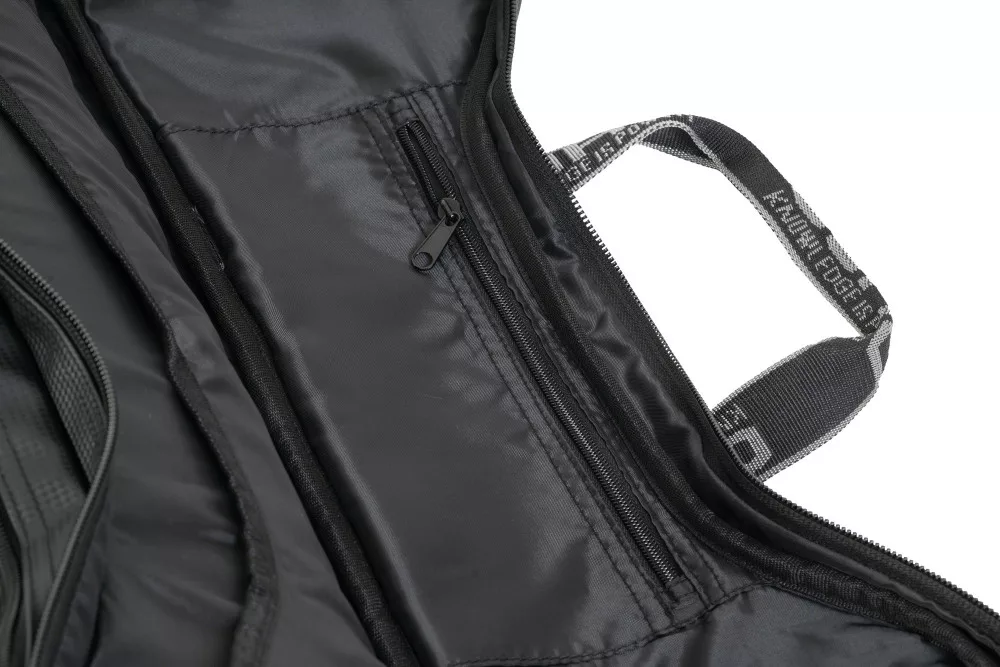 Jeder Halter verfügt über unterteilte Bereiche (5 am 10+), jeweils mit separaten gepolsterten Trennwänden, um maximalen Schutz für Rute und Rolle zu bieten. Zusammen mit zwei Außentaschen, die speziell zur Aufbewahrung von Gegenständen wie Keschern, Zubehörarmen, Distanzruten, Köderschirmen usw. konzipiert sind. Der Platz zwischen den beiden Taschen stützt perfekt einen großen Schirm, der so konzipiert ist, dass er in eine Tasche am Boden der Tasche passt und dann mit dem Tragegriff fixiert werden kann.