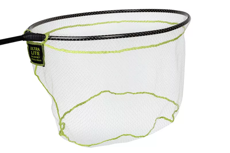 Dank seines Designs erhalten wir einen wirklich leichten Kescherkopf Das knotenlose transparente Monofilnetz schreckt die Fische nicht ab Dank des Kunststoffnetzes ist der Widerstand im Wasser minimal Erhältlich in 45cm und 50cm Größen Nicht im Vereinigten Königreich erhältlich