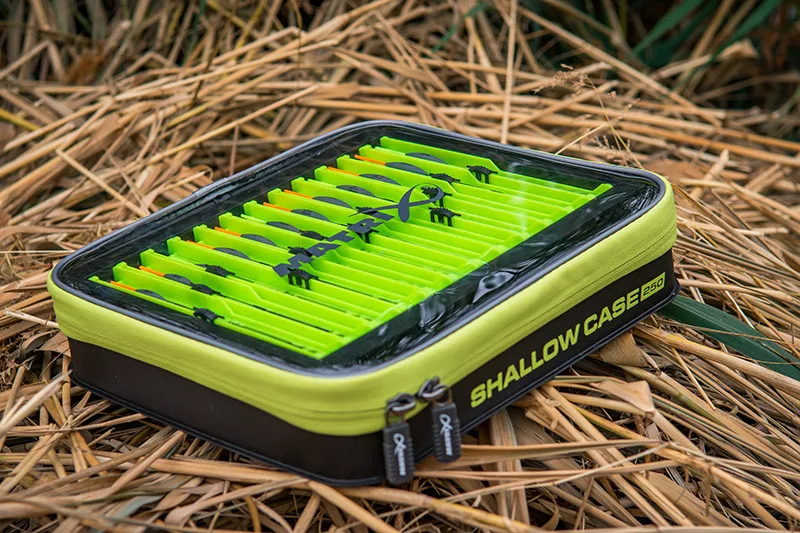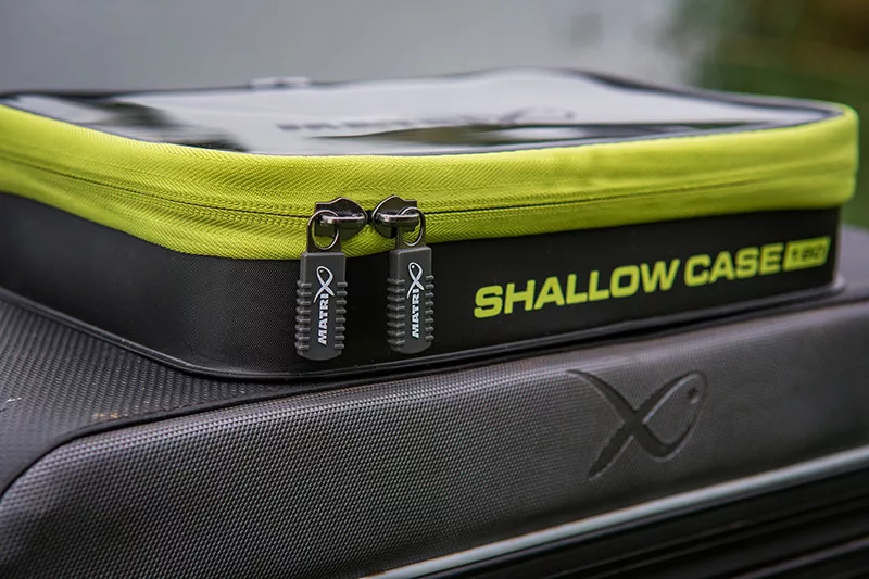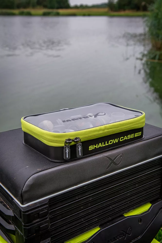 Die Matrix Shallow EVA Case 250 ist eine Gerätetasche, die sich perfekt zum Angeln eignet. Die Tasche ist aus strapazierfähigem EVA-Material gefertigt, mit wärmeversiegelten Nähten, um den Inhalt vor Feuchtigkeit und Kälte zu schützen. Der Deckel ist transparent, so dass der Inhalt leicht identifiziert werden kann. Die Tasche ist ideal zur Aufbewahrung von Köderdosen, Körben oder kleinen Utensilien. Sie funktioniert als Teil eines modularen Systems und lässt sich leicht mit anderen Matrix Taschen kombinieren.