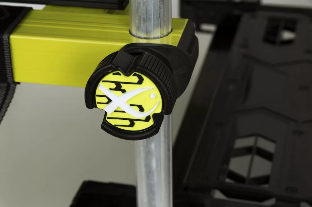 Die Sitzkiepe ist mit einem leichten Aluminium-H-Rahmen gefertigt, der nicht nur stark und langlebig, sondern auch leicht zu transportieren ist. Der abnehmbare, gepolsterte Gurt sorgt für bequemes Tragen, sodass der Transport der Ausrüstung kein Problem darstellt. Der kontrastierende limettenfarbene Rahmen und die schwarze Fußplatte verleihen ein modernes, auffälliges Erscheinungsbild.