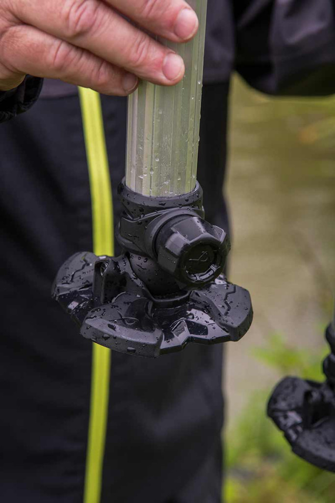 Das Bein ist mit großen, um 360° drehbaren Schlammfüßen ausgestattet, die auf jedem Untergrund hervorragenden Halt bieten. Dies ist besonders wichtig in Wettkampfumgebungen, wo Stabilität und Sicherheit für erfolgreiches Angeln unerlässlich sind. Das innovative Design garantiert auch auf nassen oder unebenen Oberflächen einen sicheren Stand.