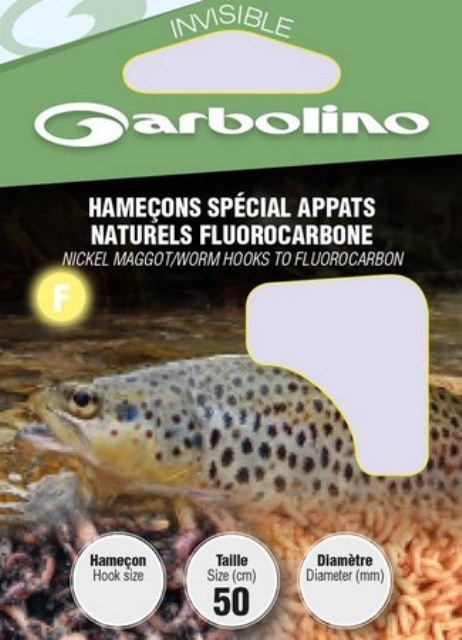 Garbolino Nickel Maden-/Wurmhaken an Fluorocarbon 14 mit Plättchen, mit Widerhaken, vorgebunden, 10 Stk.