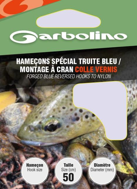 Garbolino Blaue Reversed Haken auf Nylon Größe 12 Plättchenhaken, mit Widerhaken, vorgebundener Haken 10 Stk.